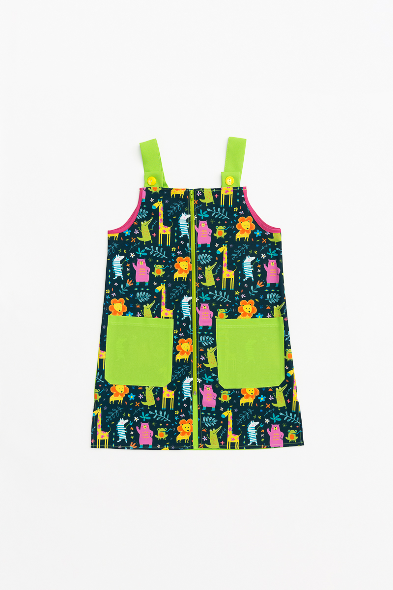 Si buscas un pichi para maestras diferente, versátil y divertido, ¡GARATROPIC será tu mejor elección! Con dibujos encantadores y colores muy favorecedores, destacando en la prenda el color verde lima de los bolsillos. La cremallera central ofrece un cierre rápido que junto a los dos bolsillos laterales brindan la comodidad y versatilidad necesarias para las tareas cotidianas. Este pichi escolar está confeccionado en tejido Stretch, lo que proporciona elasticidad, libertad de movimiento y un fácil planchado.